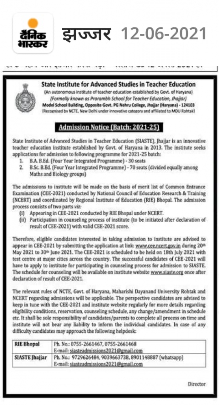 03 Dainik Bhaskar 04 Sept 21 Merit Selection