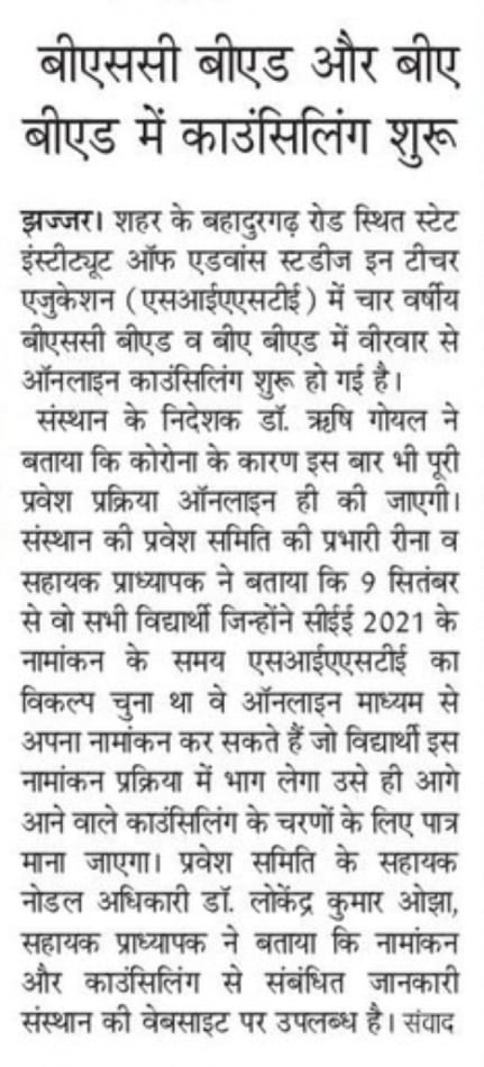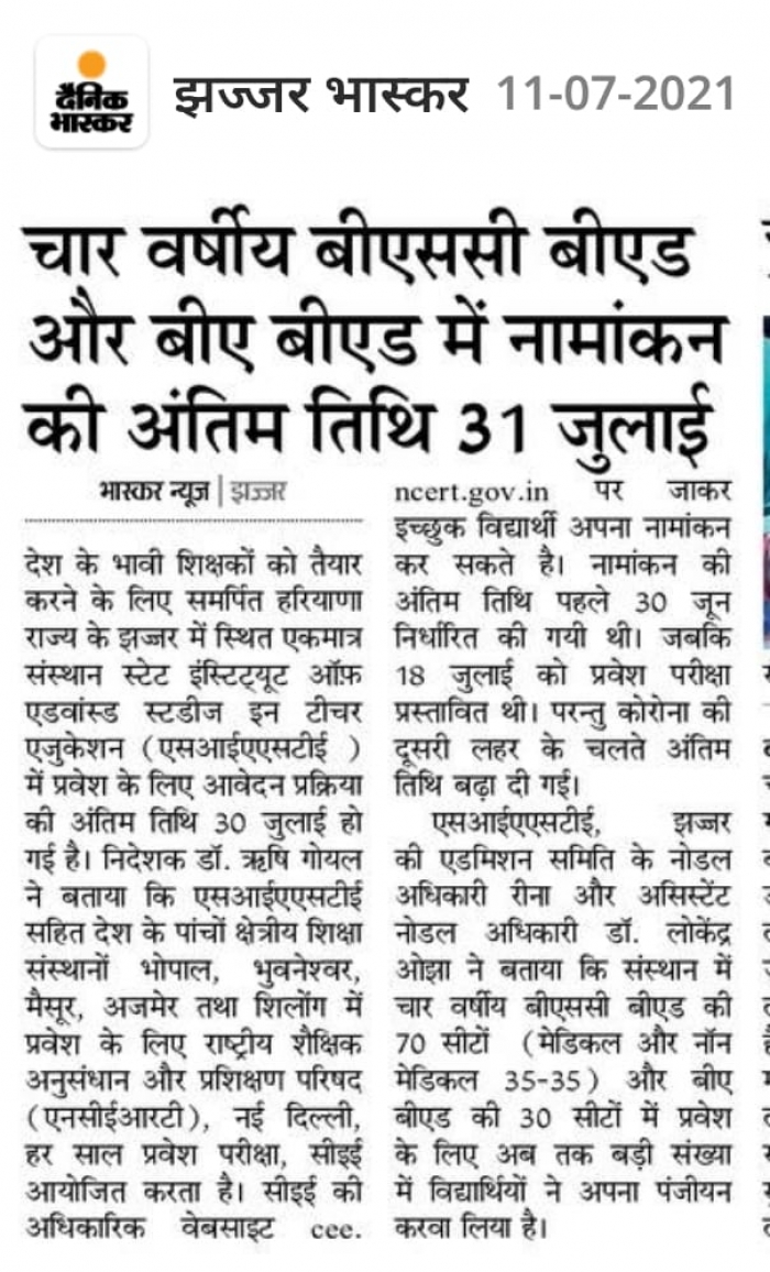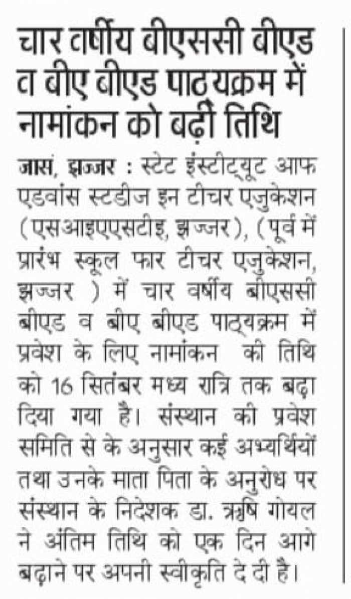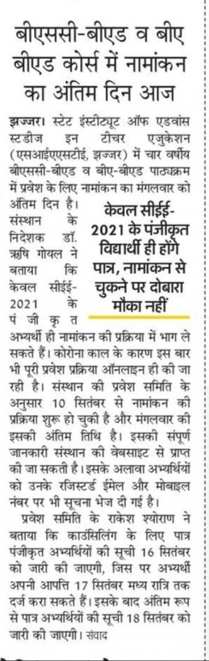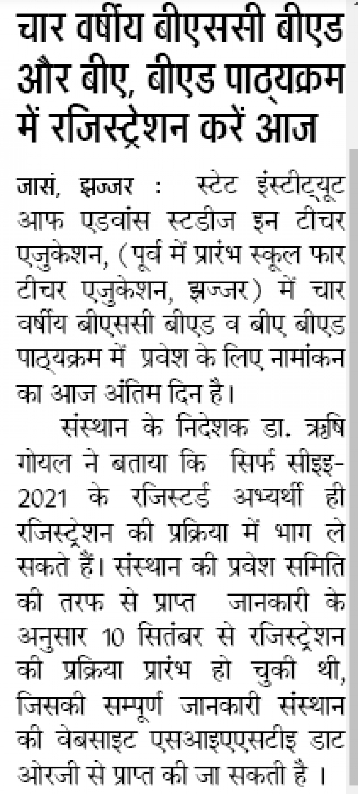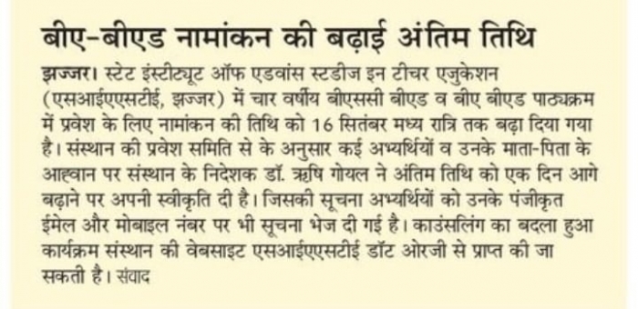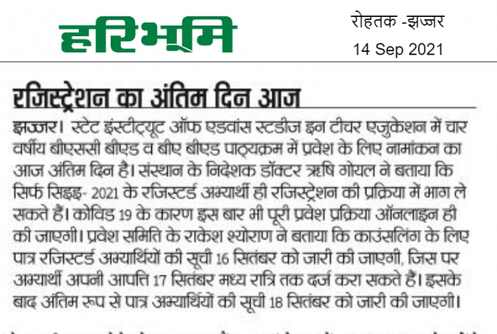 06 Dainik Jagaran 16 Sept 21 Last date of registraion extended